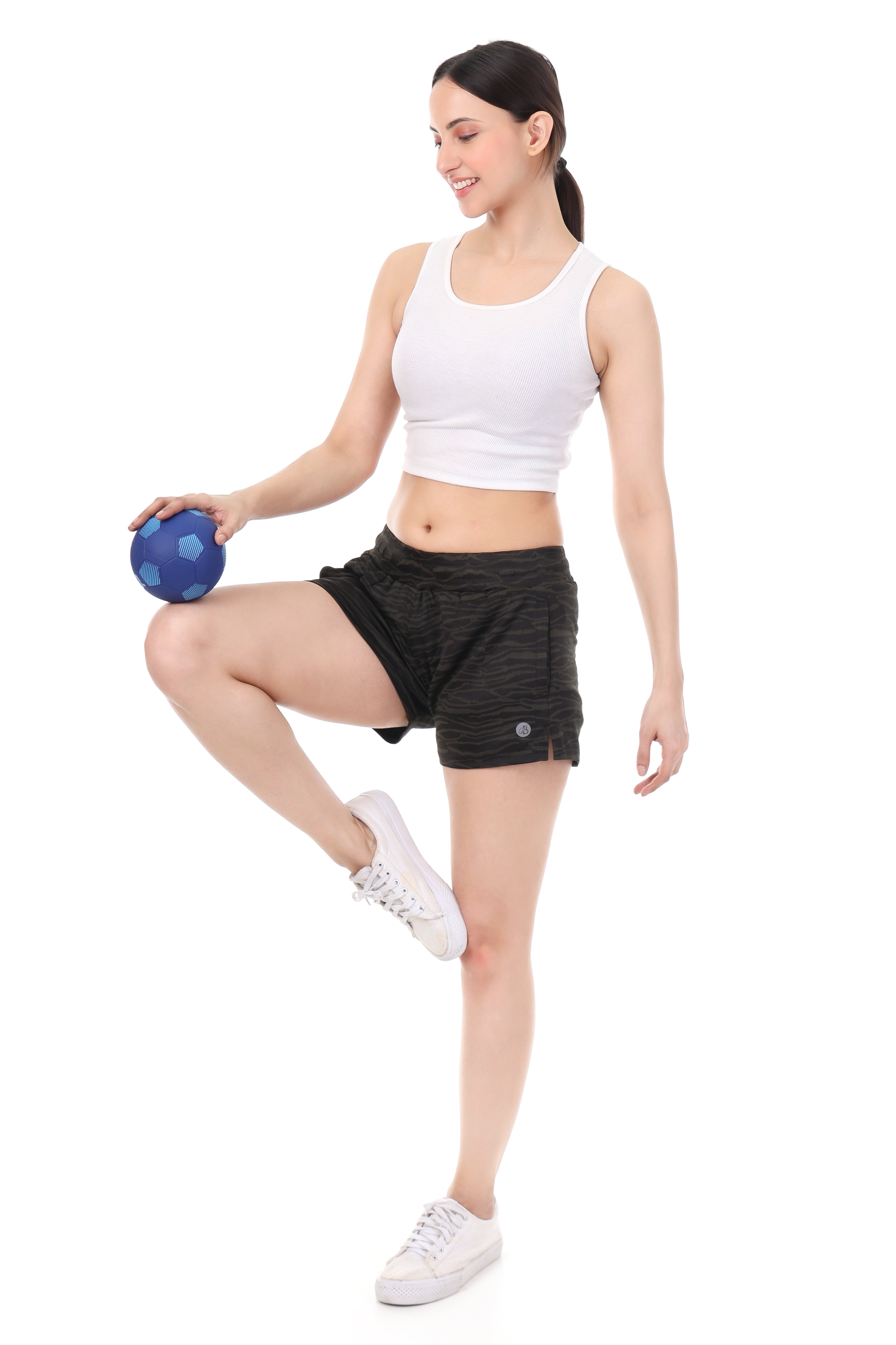 Unleash your wild side with the WildStride Black Tiger Print Active Shorts for Women, where bold meets breathable. Designed with ultra-light, quick-dry fabric and a flexible waistband, these shorts offer maximum comfort and ease of movement for workouts, running, or lounging. The stylish all-over animal pattern adds a fashion-forward edge, while the side pockets bring functionality to your fitness routine.